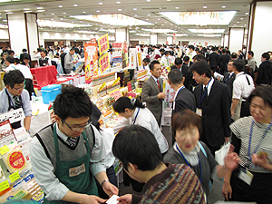 【北海道】UCCグループのサッポロウエシマコーヒーは12日、札幌市内の札幌パークホテルで業務用食材・小売用商材の「2013春季展示商談会」を開催、ホテルやレストラン、給食関係、小売など取引先約2300人が来場した。出展メーカーは175社、後援は全日本司厨士協会北海道地区本部、同札幌支部、日本中国料理協会北海道地区本部、北海道日本料理研究会。 テーマは「お客様の『課題』をビジネスチャンスへ!売れる素材、売れる仕掛けを提案」を掲げ、「どこよりも新鮮な美
