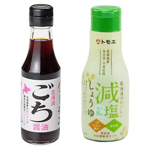 「北海道ごち醤油150ml」(左)と「北海道のおいしい減塩しょうゆ200ml」