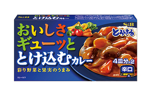 エスビー食品は7日、「とろける おいしさギューッととけ込むカレー」(140g、170円〈税別〉)3品=写真=を全国発売する。27日からは「ゴールデンカレー」「ゴールデンハヤシライスソース」をリフレッシュして発売する。 「とろける おいしさギューッととけ込むカレー」は、じっくり炒めた玉ネギと5種の緑黄色野菜(トマト、ニンジン、カボチャ、ホウレンソウ、ブロッコリー)、果実(リンゴ、バナナ)のうまみが溶け込んで一晩煮込んだカレーのようなコク深い味わい。さ