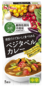 ハウス食品は夏場の本格的なカレー需要期に向けて、新商品を投入した。「ベジタベルカレー」は野菜だけで調理しても、濃厚なうまみとコクがある動物性原料不使用(乳原料除く)のカレールウだ。ジンジャー、ガーリックをベースに配合し、風味、香りのインパクトを強め、野菜によく合う「甜麺醤」の風味で濃厚なうまみとコクを実現。野菜の量や種類にかかわらず水っぽくなることを防ぐ工夫が施されている。 11年から発売し好評の「夏のカレー」には既存の〈キーマカレー 中辛〉に新た