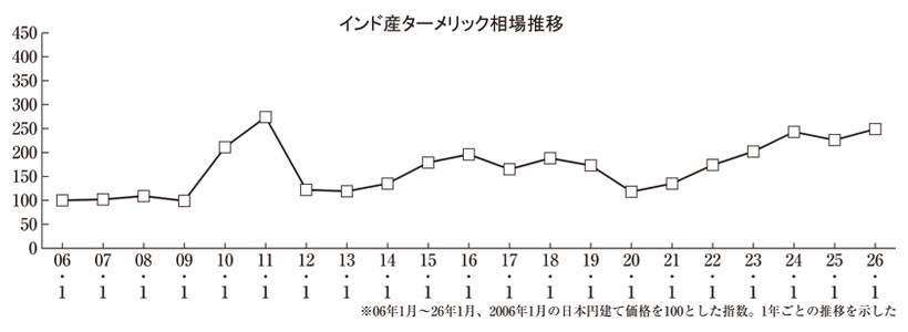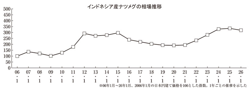 世界のさまざまな地域が生産国となるスパイス原料は、ここ数年、世界的な天候不順やロシアとウクライナの紛争などによる地政学的影響、さらには為替の変化により全体として価格は大きな上昇傾向にあった。しかし、直近の半年を見ると一部のスパイスを除いて原料の現地価格は安定傾向にある。高止まり傾向は続いているが、多くのスパイス原料価格が安定しつつあることは各メーカーに安堵を与えつつある。しかし、現在では円安による為替の影響が無視できない状況となっている。原料価格のドルベースは大きな変化がな