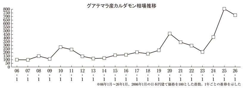調味料 特集 2026.02.13世界のさまざまな地域が生産国となるスパイス原料は、ここ数年、世界的な天候不順やロシアとウクライナの紛争などによる地政学的影響、さらには為替の変化により全体として価格は大きな上昇傾向にあった。しかし、直近の半年を見ると一部のスパイスを除いて原料の現地価…続きを読む