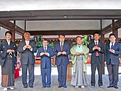 【関西】日本酒造青年協議会は10月17日、京都市賀茂御祖神社(下鴨神社)で第3回「酒サムライ」叙任式を行った。今回「酒サムライ」に叙任されたのは、それぞれの地域や活動領域において、日本酒ならびに日本酒文化の情報発信に尽力をつくした6人。 「酒サムライ」とは、日本酒離れの昨今、全国の若手蔵元が日本酒の文化を守り、世界に発信する人に敬意を表する敬称と団体名で、日本酒文化を日本国内のみならず、広く世界に伝えていくために05年10月に結団された。叙任式の開