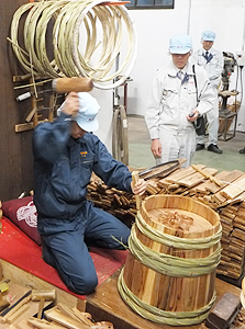 【関西】菊正宗酒造は、樽酒で使用する酒樽の自社製作を2月(実質3月)から開始した。同社は、酒樽を製作する専門業者から仕入れていたが、年々、廃業などで専門業者が減少しており、「樽詰め商品」や「樽酒の瓶詰め商品」の製造量を維持するために酒樽を自社で製作することに至った。 菊正宗酒造は、樽酒を瓶詰めにした商品を65年ごろから発売し、近年売上げを伸ばしている。しかし、樽酒に使用される酒樽を製作する業者は廃業などで年々減少し、今や全国でも十数社しか残っておら