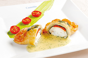 【鹿児島天然鯛とホウレン草、トマトのパイ皮包み焼 プロヴァンス風】鹿児島産食材が生きるスペシャリテ。