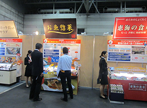 【中部】マリンフーズは15日、名古屋市国際展示場ポートメッセなごや(名古屋市港区)で「マリンフーズ商談会2016」を開催した。調達、技術、売場、素材、提案をテーマに展示ブースが並んだ会場には、東海地域を中心とした多数の小売、卸関係者が来場した。 今回、スーパーで通常取り扱っている食材で完成する「手巻き寿司コーナー」や、人手不足を補う豊富なラインアップの「お魚惣菜」シリーズ、簡便調理品「恵海の食卓」と桃屋の食べる調味料を一緒に並べて、「トッピング訴求