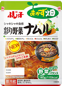 ●「おかず畑」シリーズ食卓定着 アレンジメニュー提案強化 【関西】フジッコはこの秋に「おかず畑」シリーズ新商品として「彩り野菜ナムル」(140g、標準小売270円)を発売する。同品は「韓流ブームなどの押し上げもあり、家庭の定番メニューとなったナムルは、手軽に野菜がプラスできるヘルシーメニューの一つであり、これからの家庭の食卓にさらに定着していくメニューの一つ」と商品化。小大豆・緑豆モヤシ・大根・ニンジン・ゼンマイ・ワラビの6種類の具材を、ピリ辛のコ