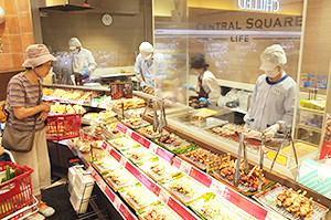 ライフコーポレーションは7月29日、大阪市旭区に「セントラルスクエア高殿店」(写真)をオープンした。 セントラルスクエア業態としては5店舗目となる同店は、大阪市営地下鉄谷町線関目高殿駅の北西約800m、同今里筋線関目成育駅・京阪本線関目駅の北西約1km、城北筋沿いに立地。同社の「都島高倉店」(南西へ約1km)、「毛馬店」(西へ約1.3km)、「関目店」(南東へ約1.4km)などに近いドミナントエリアで、競合他店も密集している。一次商圏内は50代と7