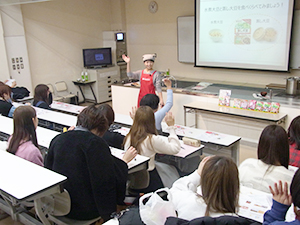 【関西】マルヤナギ小倉屋は1月30日、食育活動の一環として兵庫栄養調理製菓専門学校(兵庫県西宮市)で節分にちなんだ伝統食材「大豆」に関する食育授業を実施した。 「健康美学~豆から始まる イキイキ健康(まめ)ライフ~」をテーマに、話題の腸内環境研究を盛り込んだ、学生にも身近な健康課題を取り上げた講義内容に加え、現代の節分事情にあった新しい提案として「節分汁」の試食と栄養解説なども行った。 午前・午後の2回の授業で、同学校栄養