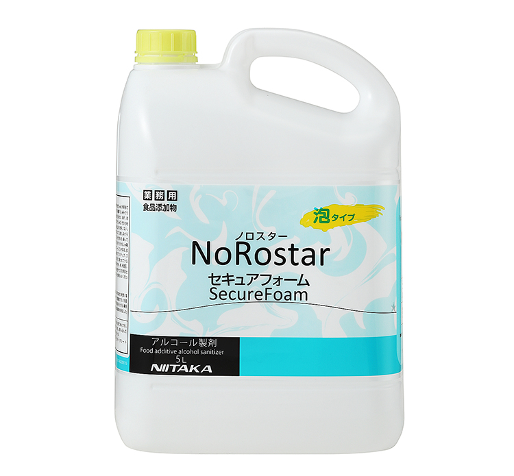 【関西】ニイタカはウイルス対応型製品ブランド「ノロスター」シリーズから、洗浄、除菌、ウイルス除去が1本で実現する食品添加物アルコール製剤「ノロスター セキュアフォーム」(5L)を3日に新発売した。 泡で出るアルコール製剤で、2度拭き不要のため、さまざまなシーンで幅広く活用できる。 食品添加物アルコール製剤は食品に触れても、手指を介して口に入っても安全性が高いことから食品産業を中心に広く使用され、近年は冬場のウイルスに対応し