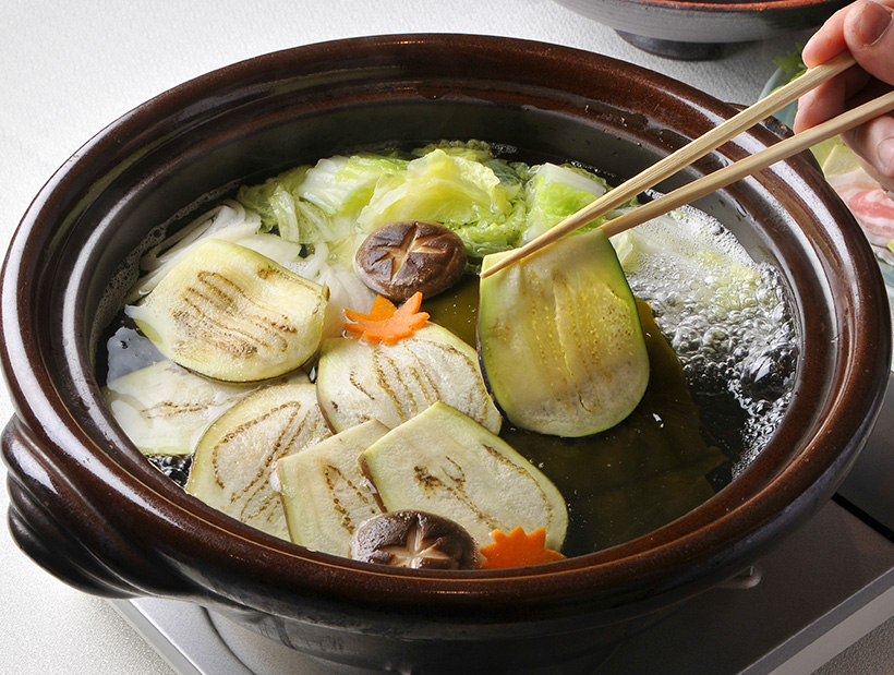 「日本料理湯木」の「水茄子と黒豚のしゃぶしゃぶ」