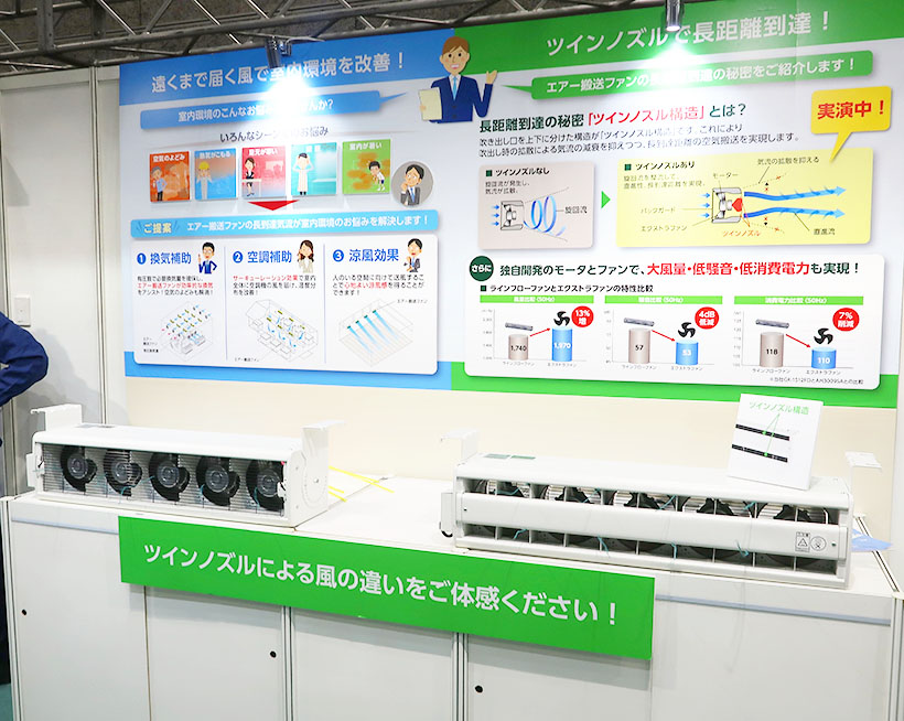 【関西発】三菱電機は5日、空調・家電・住宅設備部門の製品やサービスを紹介する「三菱電機 暮らしと設備のソリューション展2025」を大阪市内のインテックス大阪2号館で開催した。東京会場、名古屋会場と同様に2年ぶりの開催。家電・住宅設備機器とともに、空調・換気機器や内蔵型ショーケース、ジェットタオル、LED照明、業務用エコキュート、低温機器・産業用除湿機などの幅広い業務用設備機器を提案した。 SMなどに導入されている内蔵型ショーケースでは、環境に配慮し