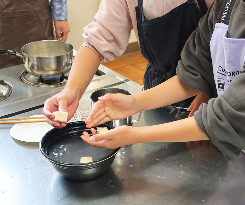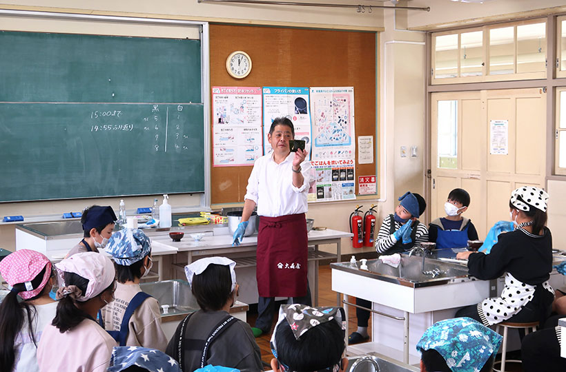 【関西発】日本アクセスがアクセス乾物乾麺市場開発研究会の会員メーカーと連携し、今年度は全国6エリアで実施している小学校での乾物の食育授業。12日の高槻市立南平台小学校(大阪府高槻市)開催では、みすずコーポレーションと大森屋がそれぞれこうや豆腐と海苔をテーマに授業を行った。 当日は5年生72人を対象に、みすずコーポレーションはこうや豆腐の基礎知識から歴史、原料大豆の環境性や健康性までを座学で幅広く紹介した後、実習でこうや豆腐の含め煮を調理。水で戻した