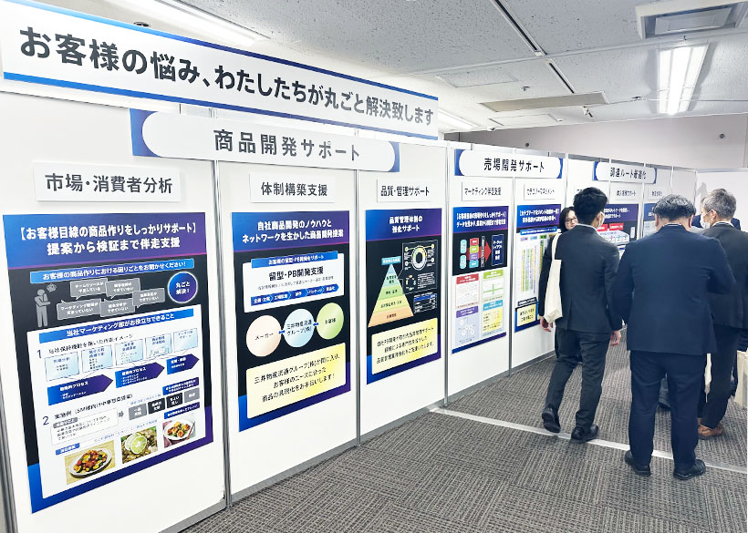 【関西】三井物産流通グループのコンシューマープロダクトユニット関西支社は20日、第38回「三井物産流通グループ関西メニュー提案会」を大阪マーチャンダイズ・マート(大阪市中央区)で開催し、グループの直輸入品や開発商品とともに、関西支社が取り扱う各地域の多彩なオリジナル商材・メニューを紹介した。 会場の導入部ではグループの商品・売場開発や調達ルート最適化の各機能をパネルで大きく訴求。 商品ゾーンでは地産地消の「地域でつながる国