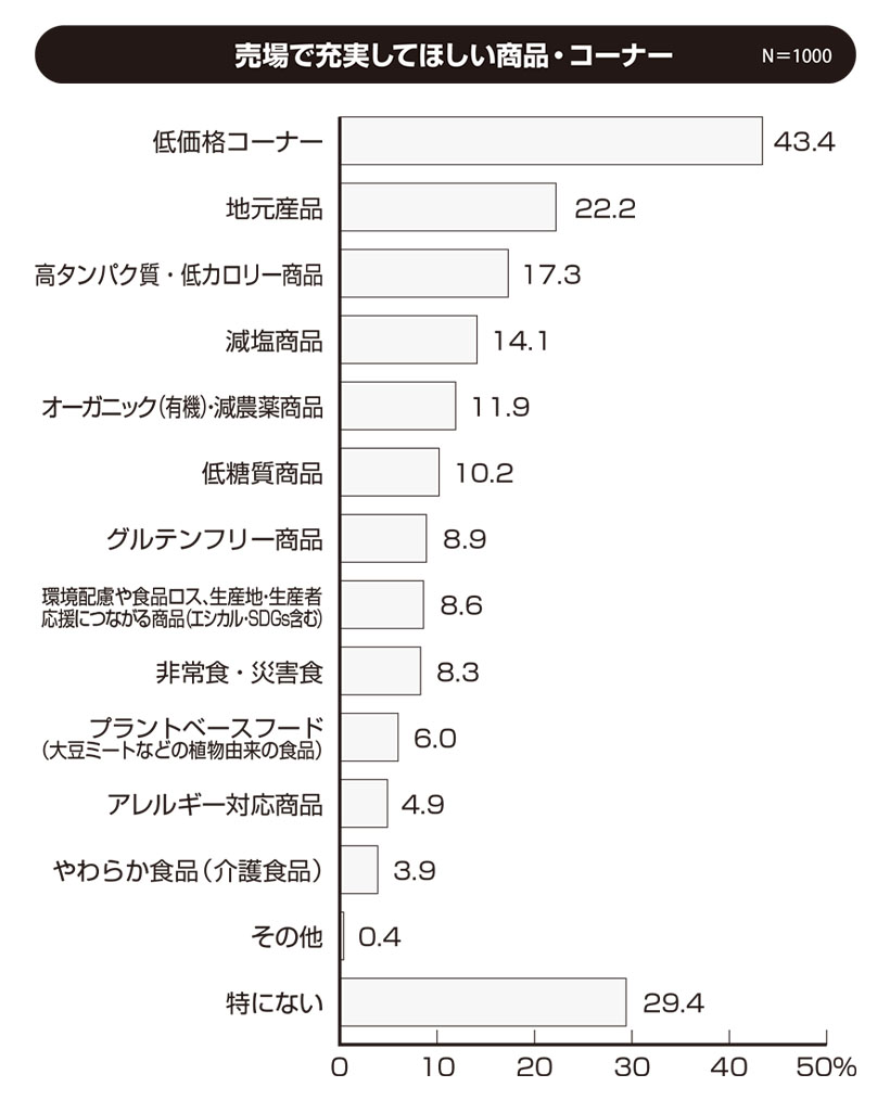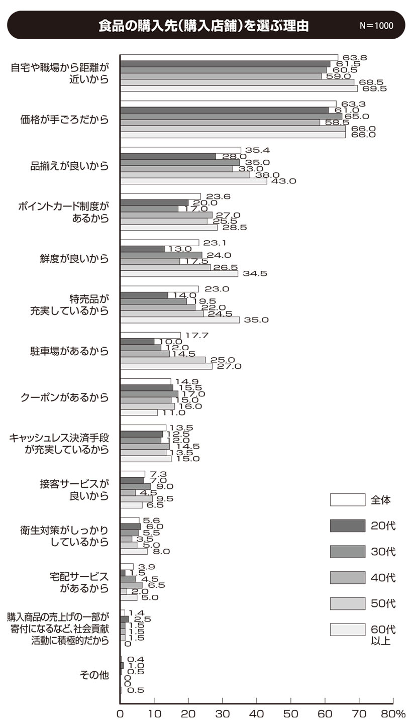 特集 総合 2026.01.29●利用している食品の購入先(購入店舗)について N=1000 ◇スーパー一極集中は今年も変わらず 利用している食品の購入先(購入店舗)は、全体では「スーパー(総合スーパー、食品スーパー)」(93.8%)が例年と変わらず突出して高く、「ドラッグスト…続きを読む