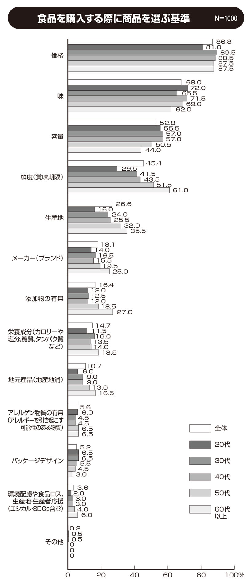 特集 総合 2026.01.29●メニュー決めで重視すること N=1000 ◇女性50代以上の4割強が健康面 若い年代ほど好み重視 女性の方が「健康面」を重視する人が多く、女性の中でも50代以上は4割以上と特に多い。年代別では60代以上では4割弱を占める。基本的に若い年代ほど「…続きを読む