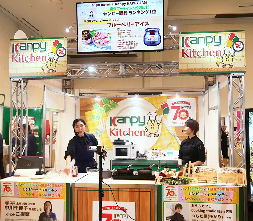 【関西】加藤産業は11~13日、神戸国際展示場(神戸市中央区)で「2026春季加藤産業グループ総合食品展示会」を開催した。今回も「流通を最適ソリューション」をテーマに、今年で誕生70周年を迎えた自社ブランド「Kanpy(カンピー)」の特別展示を実施したほか、ソリューションコーナーでは「気づき」をキーワードにメリハリ消費や価値需要に対応した選ばれる売場アプローチを訴求した。 出展メーカー数は昨年より34社多い469社(常温164、菓子41、低温114