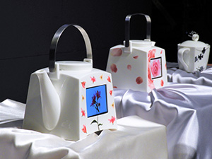 鳴海陶器にディスプレーを埋め込んだ「紡ぎ」シリーズ