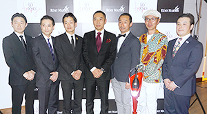 宮崎俊治代表取締役(中央)とオリジナルカクテルを製作した6人のバーテンダー