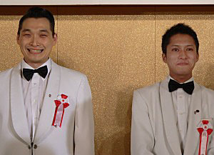 満面に笑みをたたえる山本浩貴さん(右)と、岡村朗さん