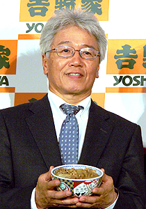 客数が30%伸びれば、売上げは15~20%増となるだろう--。10日、東京での会見で牛丼の値下げを発表した安部修仁吉野家社長は、価格改定初動からの短期見込みをこう説明した。米国産牛肉は2月の輸入条件緩和で、仕入れ価格の下落が見込める。そのため18日午前10時から、牛丼並盛り通常価格を380円から280円に引き戻した。 並盛り280円は、BSE(牛海綿状脳症)問題を受けて04年に牛丼一時休止へ踏み切った直前と同額。安い・うまい・早いを追求する同社にと
