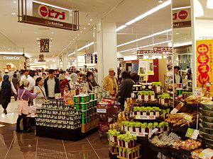 ◆アッパー商材で戦略的SC目指す 歳末商戦を目前に控えた10月から11月にかけて、中部圏では食品スーパー各社はさまざまな新店、新業態店を出店している。そういった中でユニーは6日、モール型9店舗目となる「ヒルズウォーク徳重ガーデンズ」を名古屋市緑区にオープンした。同社におけるモール型店舗の名古屋市内出店は初めて。緑区の人口は23万人と同市内最大で、今年度の地価上昇率が全国1位の地区であり、また、11年3月に開通予定の地下鉄桜通線徳重駅と地下2階の連絡