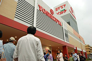 【中部】義津屋は14日、昨年10月から建て替え新築のために閉店していた「ヨシヅヤ甚目寺店」をグランドオープン=写真、初年度年商45億円(テナント含む)を見込む。 同店は昨年まで36年間営業していたが、食品はテナントとしてサワムラヤが売場面積322坪で担っていた。今回の改装を機に、食品は直営の「Yストア」が519坪で展開。食品だけの売上げ目標は18億円、平均客単価は2200円を見込む。 また今回は、特に防災面を強化し「絶対安心をお
