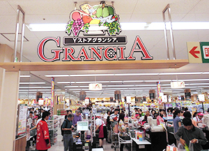【中部】義津屋は9月19日、総合ショッピングセンターヨシヅヤ津島本店(愛知県津島市)内の食品売場の改装とともに店名を変更。これまでのYストア津島本店を「Yストアグランシア津島本店」とし、店内のデザインも一新した=写真。今後も大型店は基本的に「グランシア」に変更していく考えだ。 グランシアは、グランド(広大な、威厳のある)と、グラシアス(有難う、感謝)の意味を込めた造語。店舗コンセプトは「日頃の感謝を込めて、お客さまの新しい満足を生み出し、地域に愛さ