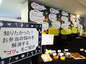 【中部】11月から新年度がスタートした名給は11月21日、メニュー開発部主催の展示会を開催。4年連続4回目となる今回は、弁当・スイーツをテーマに同社南館で開催し、事業所給食や外食ユーザーなど100人が来場。同部が提案する新たなメニューや人手不足解消提案など、随所で活発な意見交換が見られた。 会場は35社のメーカーが新商品を中心に紹介。名給提案コーナーは「知りたかったお弁当の悩みを解消するコツを紹介」として、各社が課題に挙げる「彩り」に対しては、弁当