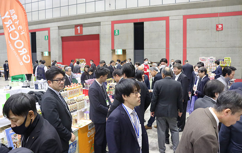 【静岡】メイカングループは23日、浜松市のアクトシティ浜松展示イベントホールで春季展示会を開催した。新規44社を含む過去最高の271社(ドライ141社・チルド130社)が出展。食品小売業関係者らが多く来場して盛況だった。 今回、地元菓子メーカーの「時のプリン」(浜松市)と開発した浜松産の紅はるかを使ったプリンを試食展示し、来場者から商品名を募集。現在、観光販路やECサイト、小売店での販売を視野に入れている。今後、メイカングループは強みである低温度帯