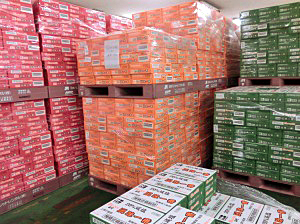 ハナマルキは主力の大利根工場(群馬県邑楽郡)に隣接した大利根物流センターで、物流体制の再構築に取り組んでいる。共配センターを活用することで、配送の効率化を実現。無駄な作業が減り、コスト削減にもつながった。 同社が大利根工場の隣接地を物流センター用に取得したのは10年3月。首都圏に近い大利根工場に物流拠点を併設することで、競争力を高めることを狙った。従来の工場用地2万3100平方mに対し、取得した土地は4万2900平方m。旧設備を生かしながら、内製化