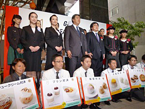 松屋銀座と銀座三越による初の共同イベント「ギンザファッションウィーク」(GFW)が19~25日まで開催された。官民一体のファッション振興イベント「Mercedes-Benz Fashion Week TOKYO」と連動して開かれたものだが、食品関係では“秋の味覚 スイーツ対決”と銘打って両店のデパ地下人気ショップが旬の素材を使ってオリジナルスイーツの競演を行った。 19日のオープニングセレモニーでは、松屋銀座上野一郎店長と銀座三越安達辰彦店長が開会