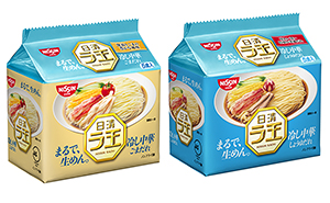 日清食品は、「日清ラ王 袋麺」シリーズの新商品「日清ラ王 冷し中華 しょうゆだれ 5食パック」、「同 ごまだれ 5食パック」の2品(写真)を14日から全国発売した。 「日清ラ王 冷し中華」の麺は、ゆであがり後に水でしめることで、“まるで、生めん。”のようなコシのある食感が一層引き立つ。「しょうゆだれ」は、地域によって異なる味の嗜好(しこう)に合わせて、東日本向けと西日本向けに2種類のたれを開発。また、今回新しく「ごまだれ」もラインアップに追加し、春