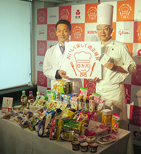 ロカボマークを手にする山田悟氏(左)と辻口博啓氏