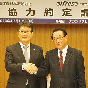 アルフレッサヘルスケア(勝木尚社長)と韓国農水産食品流通公社(呂寅弘社長)は19日、業務協力約定を締結した。相互有機的な業務協力体制を構築し、韓国産食品の日本への輸出拡大を図る。 締結した業務協力の内容は、(1)健康機能食品に関する情報公開、輸出業者あっせん、相互訪問などにおける協力(2)日本市場における有望商品の共同開発およびアルフレッサヘルスケア社の流通網を通じた販売拡大(3)アルフレッサヘルスケア社が関係する日本の流通チェーン店における韓国食