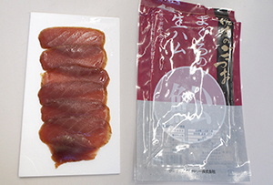 マグロの生ハム(スライス)。適度に水分が抜けることで、優れた食感を実現