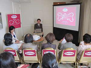 ダノンジャパンによる、ヨーグルトの新商品「ダノンデンシア」のPRイベント「デンシア骨活プロジェクト」がスタートした。10月17~18日には、東京都中央区のホテル銀座で田中清和JR東京総合病院リハビリテーション科部長による骨の健康ミニ講義や試食会を実施=写真。年内は関東で、来年以降は全国各地でウォーキングイベントやショッピングモールでイベントを実施していく予定。