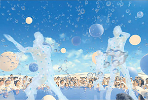 カルピスは12日から、「カルピスソーダ」の新TVCMを全国で放映開始した。男性ボーカルグループ「GReeeeN(グリーン)」とコラボし、映画やゲームなどの作成で使用されているモーションキャプチャーという撮影技術に挑戦。白い泡が飛び交う空間でライブを行う姿を通じて、同品の白くはじける世界観を表現した=写真。