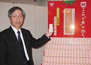 日清ヨークは、トマトから植物性乳酸菌「トマトLP14乳酸菌」(特許取得、以下LP14)を初めて発見した。胃酸耐性に強く、生きたまま腸まで届き、善玉菌の増殖促進や悪玉菌抑制が特徴だ。このLP14を使用した乳酸菌飲料「トマトの乳酸菌」(200ml100円)を開発、3月4日から沖縄県を除く全国で発売する。山田親男社長は18日の発表会で「年間販売目標は30億円、バリエーション展開を考え、100億円のステージを狙いたい」と意気込みを語った。 LP14と「良い