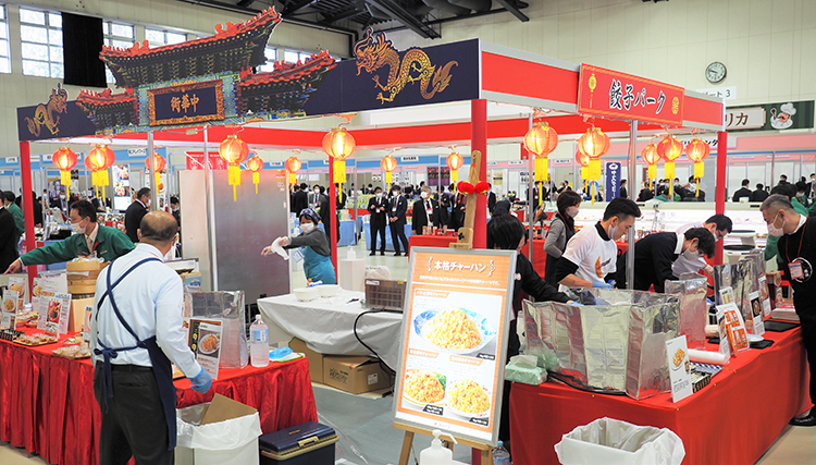 【新潟】カナカンは2月22日、新潟市産業振興センターで「2023年新潟地区総合企画商談会」を開催した。中央催事では新潟地区ならではの企画として、全国の「ご当地プリン」を集めたスイーツや、横浜中華街をイメージした展示ブースで県内の有名店が出展しギョウザを試食するなど、新しい食提案で売場活性化を訴求した。