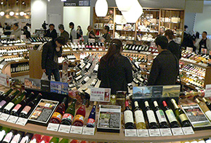 円形に陳列されたワインコーナーは店内でも見せ場のひとつ