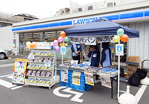 潮田小学校6年1組の児童がPOPや陳列にも工夫した店頭販売=ローソン鶴見仲通一丁目店