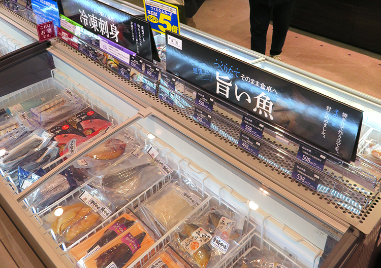 相鉄ローゼンは9日開店の「そうてつローゼン星川駅前店」(横浜市保土ヶ谷区)で伊藤忠食品の冷凍食品ブランド「凍眠市場」などを導入して冷凍食品も拡充したほか、店内調理による惣菜やインストアベーカリーを強化した。同店の売場面積は328.8坪(1085平方m)、年商は初年度15億円を見込む。 冷凍食品は豊富な品揃えを展開した。「凍眠市場」は平台で惣菜売場近くで展開し、冷凍の刺し身や肉、酒、フルーツ、パン、惣菜など55品の商品を扱う。そのほか冷凍スープの「ス
