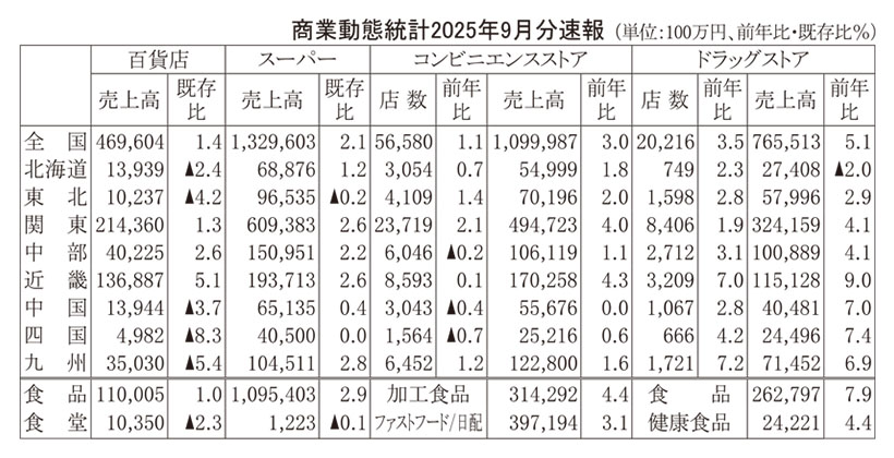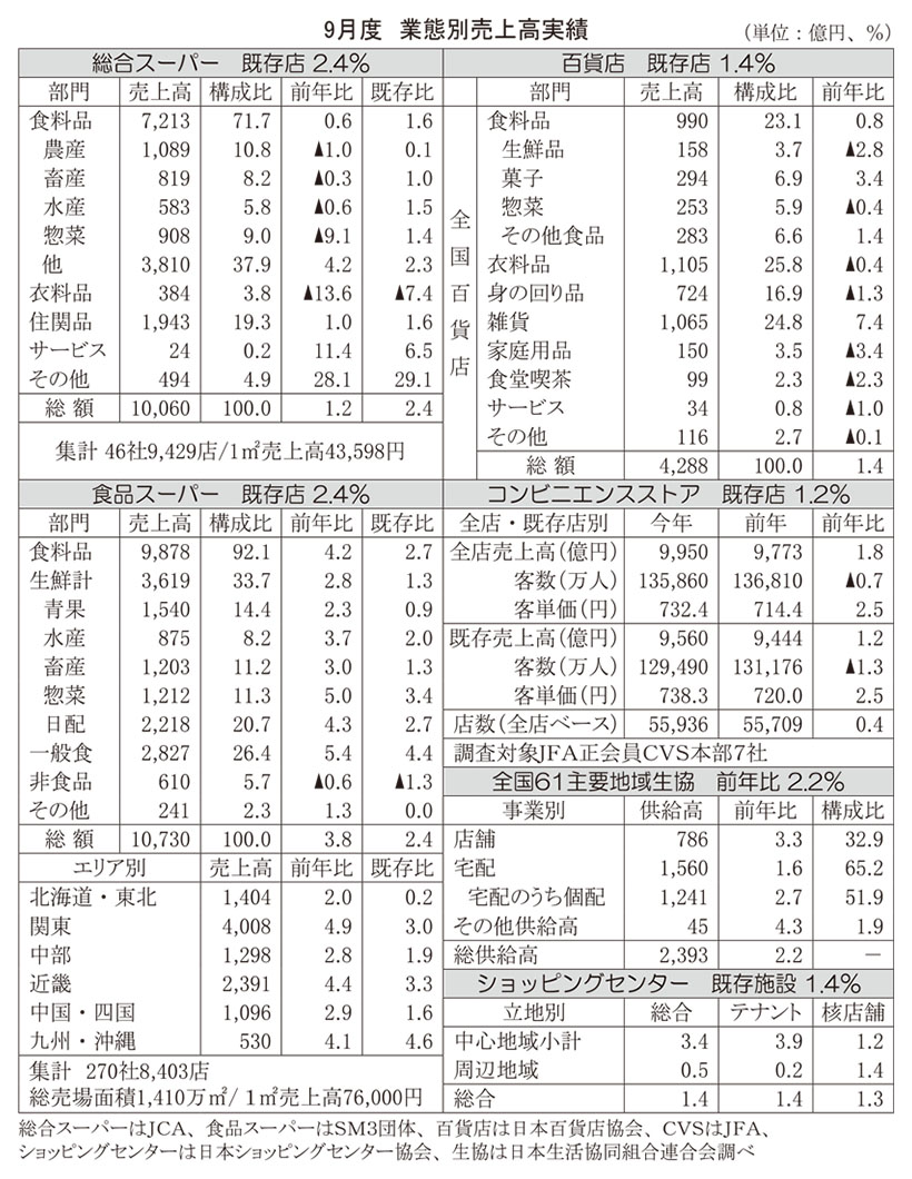 ●団体・生協統計=全業態が前年上回る 9月度の小売業界団体と生協の統計によれ