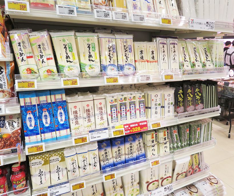 猛暑の長期化で季節品の切り替えが難しくなったSMの乾麺売場(写真はイメージ)