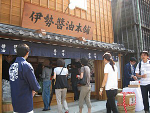 伊勢醤油本舗は9月29日、三重県伊勢市の伊勢内宮前おかげ横丁内に「伊勢醤油本舗・本店」をオープンさせた。当日は開店セレモニーが行われるとともに、先着200人に新製品「祝伊勢醤油・縁起」が配られ、朝早くから大きなにぎわいを見せた。 同店は、江戸から明治にかけての伊勢路の代表的な建築物が移築・再現されている「おかげ横丁」内で初めてとなる醤油屋(醤油蔵)。これまで通販を中心に土産屋や百貨店で「伊勢醤油」やその関連商品を販売してきた同社が初めて構える直営店
