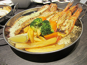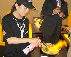 ガスバーナーで豪快にシーフードを炙るパフォーマンスも名物