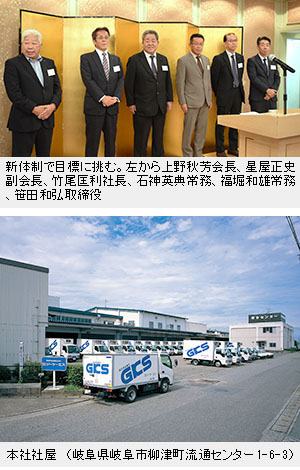 業務用食品卸として、学校給食をはじめ産業給食、外食関係、惣菜関係など幅広い分野で岐阜を中心とする中部地区の食品流通の発展に寄与し、地域に食の楽しみを提供してきたジーケーエス。8月に星屋正史社長が退任し副会長に就任、後任に竹尾匡利専務が社長に就任して新体制がスタートした。今、中部食品界で最も注目されている企業の一つだ。前期(65期)売上げは134億4037万円、粗利益は13億9899万円。惜しくも計画には届かなかったが増収増益を達成し、着実に歩みを進めている。今期(66期)は