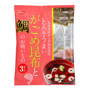 ●「がごめ昆布」シリーズが伸長 白子は「がごめ昆布のお吸いもの」シリーズを拡充し、ギフトなど多様なチャネルへの展開を広げて、成長を続けている。生海苔を使った「お茶漬けサラサラ」で知られ、近年は「がごめ」や炊き込みご飯の素など付加価値品の開発を加速。新商品の「がごめ昆布と鯛のお吸いもの」「炊き込み金目鯛ご飯の素」も好調に推移し、独自の価値提案に成果を上げている。 「がごめ」は13年9月から発売してレギュラー、オクラ、鯛の3メ