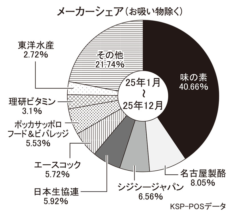スープ 特集 2026.03.04粉末、カップ入りといったインスタントスープ市場は安定成長を続けている。コロナ共存、景気不安の倹約・内食志向を経て、スープの健康栄養成分、経済性、簡単調理が評価されている。26年3月期は毎年の酷暑、暖冬によって冬の最盛期が遅れて影響を受けた。主力の粉末…続きを読む
